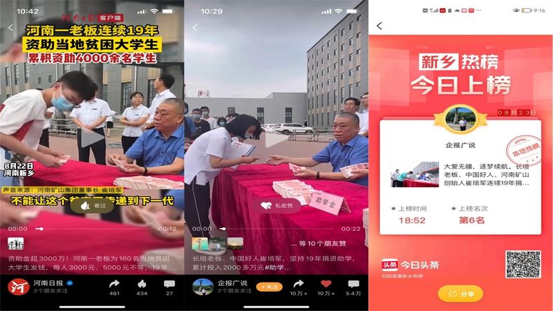 疫情這三年,河南礦山保持穩(wěn)中有進的健康發(fā)展,得到了社會各界及市場的認可,從“年初開門紅”,“智造新突破”,“國內(nèi)外市場拓展”,到“捐助慈善公益”等系列孝文化活動,被**及省市級各大媒體爭相報道,聚焦公司高質(zhì)量發(fā)展,進一步擴大品牌美譽度。